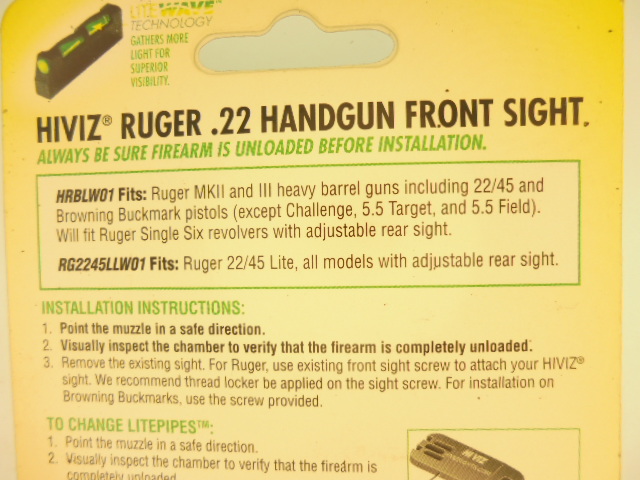 GUIDON FIBRE OPTIQUE HIVIZ RUGER MKII/MKIII